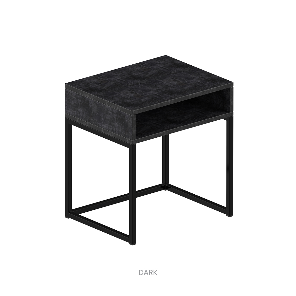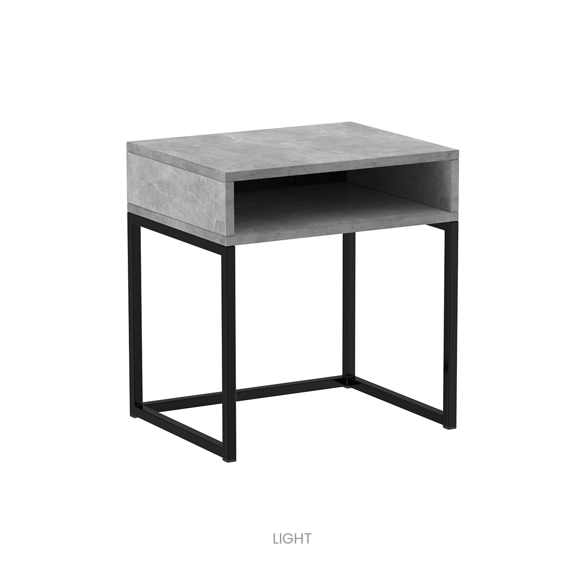 The VITO table combines clean lines with the practicality of open storage space. The black metal frame, paired with a concrete-effect top (Dark / Light), gives the interior a modern industrial look.