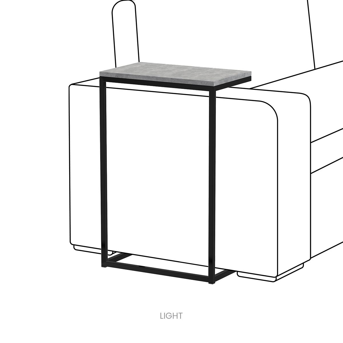 The PIETRO side table features a functional, modern design that emphasizes simplicity, stability, and visual lightness. It stands out with its elegant metal base and clean tabletop in a concrete finish (Dark / Light). Its minimalist form, combined with an industrial character, creates a timeless addition to modern interiors.