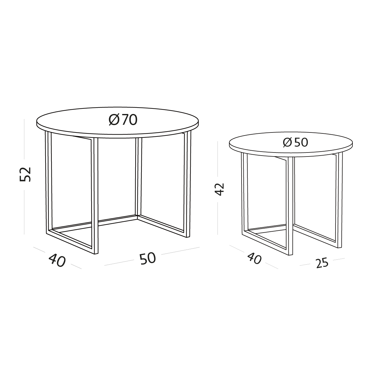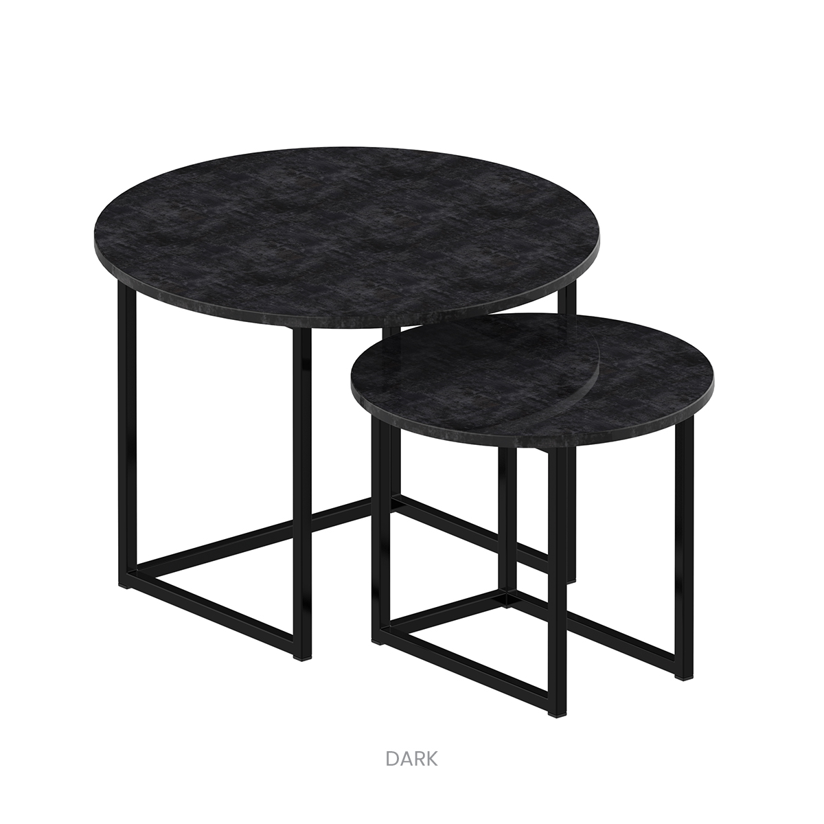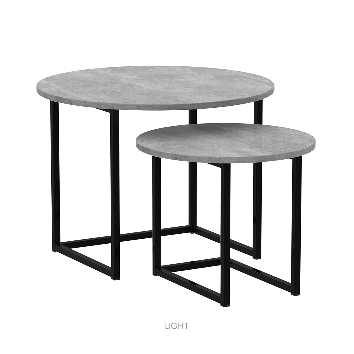 They can be arranged as a set of two tables or placed separately in a room—in the bedroom as nightstands or in the living area. Their minimalist design, combining a sturdy metal frame with a durable top, makes them a versatile solution for modern interiors. Even when placed in different locations, they maintain a consistent design style and create a harmonious, compact whole.